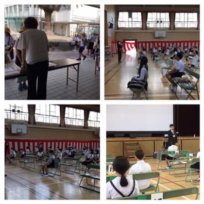 少し検温をするのに時間がかかりましたが、講堂の中では緊張気味です。[おかえり]と声をかけると、[ただいま]と返してくれました。
