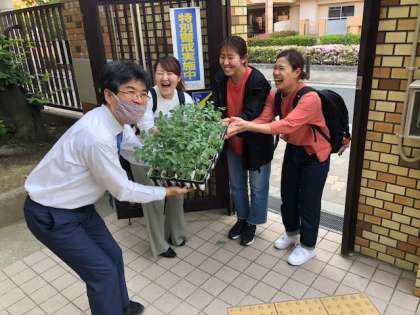 六反南保育園から、トマトの苗をいただきました。
