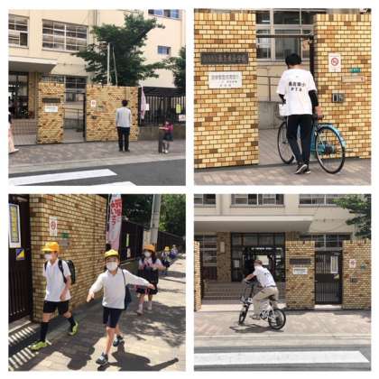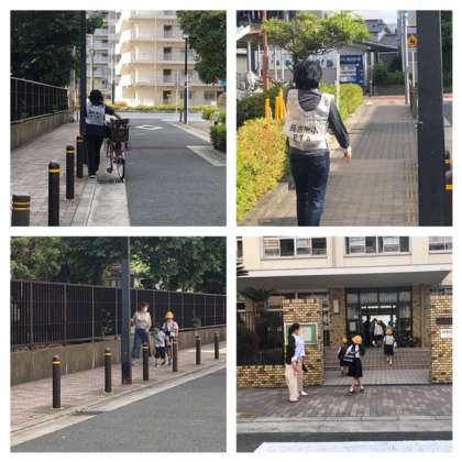 5月20日もたくさんの保護者の方が、ビブスをつけて、送り迎えや自転車での巡視を行い、子どもたちの安全を守りました。