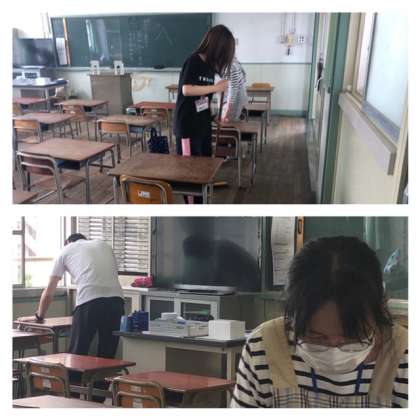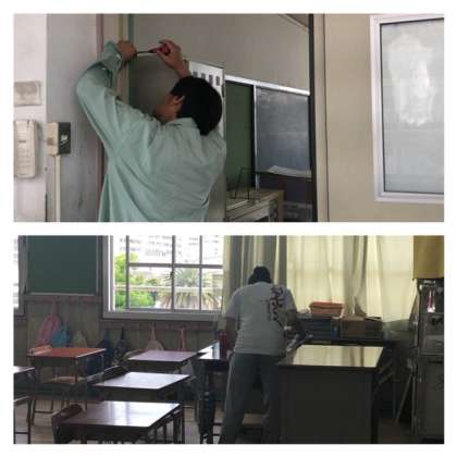 子どもたちが帰ったあとは、教職員が教室を消毒をしたり、子どもの安全のためにいろいろなものを直したりします。