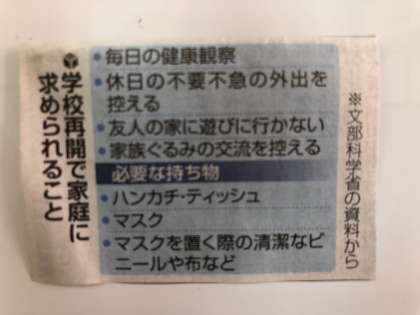 文部科学省から学校再開で家庭に求められることが示されました。