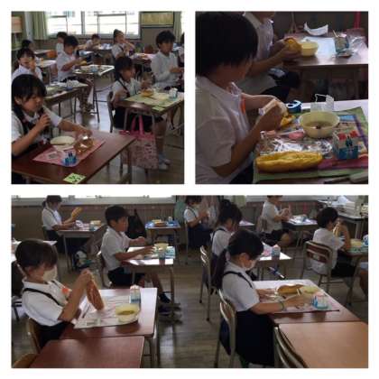 3年生は、パンプキンパンにジャムをたっぷりぬって、大きな口で食べていました!