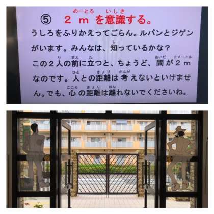 ソーシャルディスタンスの大切さは伝えていますが、実際に2メートルの距離を感じられるようにしました。
