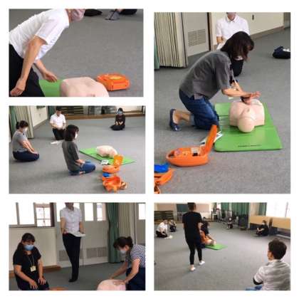 多目的室にて 成人に対する心肺蘇生の研修を行いました。