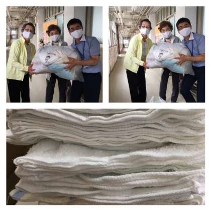 生涯学習ルームの歌体操の方々が使ってくださいと、ぞうきんをたくさん持ってきていただきました。