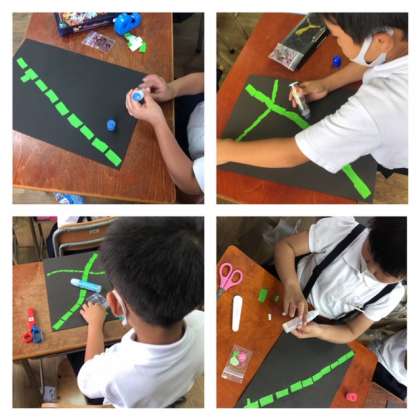 七夕のささをつくりました。節を考えて、自分だけのササになりました。