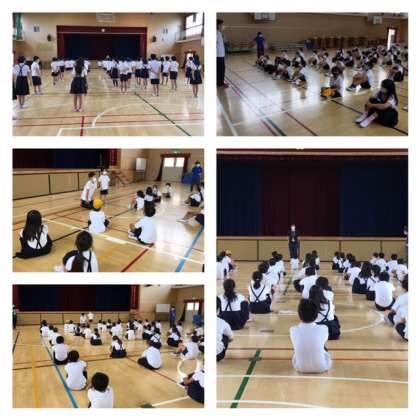 本日より、5年生に新しい友達が来てくれました。学年での集会の中で、自己紹介をしてくれました。