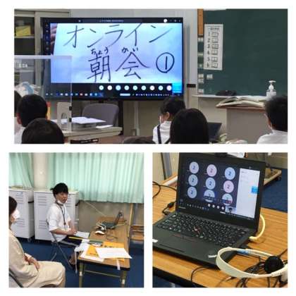 初めてティームスを使ってオンライン児童朝会をしました。これも新しい学校の生活様式です。そして、オンラインでの授業につながるものです。