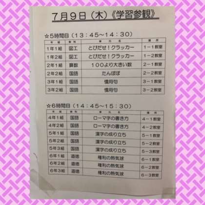いよいよ明日、明後日は、分散学習参観です。その教科と学習内容です。