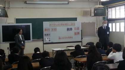 少年サポートセンター(大阪府・大阪府警察・大阪府教育委員会の連携事業)の方の授業がありました。