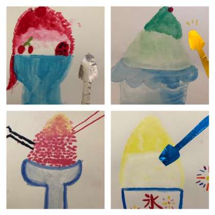 ブルーハワイ、いちご味、ミルク金時、レモンといろんな種類があります。