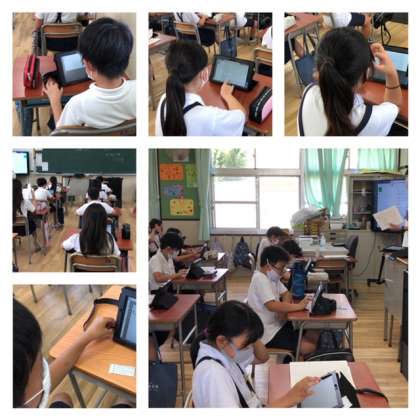 クラス担当が、好きな食べ物はなんですか?と聞くと、子どもたちがタブレットに打ちます。