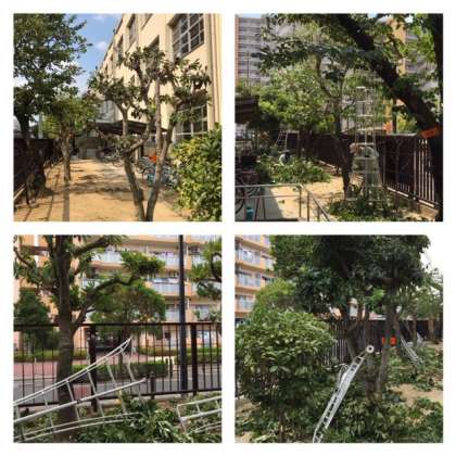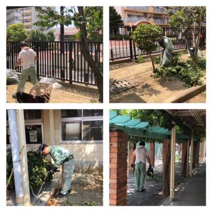 管理作業員の営繕班の方が、本校を訪れ、樹木の剪定作業をしてくださっています。