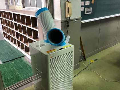 クーラーのついていない、生活科室、理科室、家庭科室にスポットクーラーが入りました。