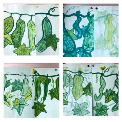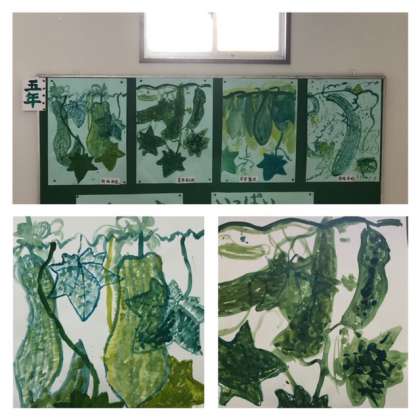 へちまの実を描きました。どれもよくとらえて自分らしいへちまを描いています。