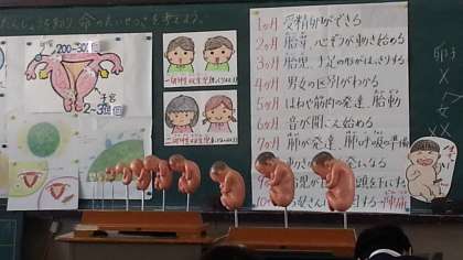 「今まで赤ちゃんについて考えたことがなくて、あまりわからなかったけど、この授業で、赤ちゃんは、おなかの中で、何か月で育つのかもわかったし、どんな感じで大きくなるのかもわかった。命の大切さも分かった。」