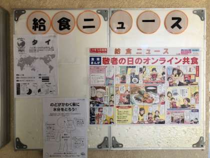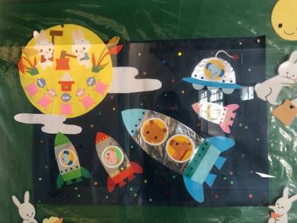 9月らしい飾りが給食室で子どもたちを迎えます。