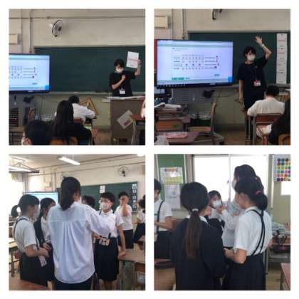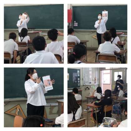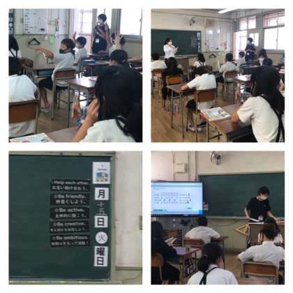 今年度、外国語科の時間には六反中学校から英語の先生が来て教えてくださっています。
