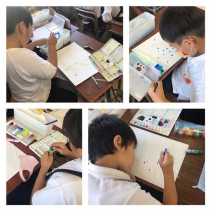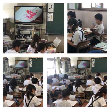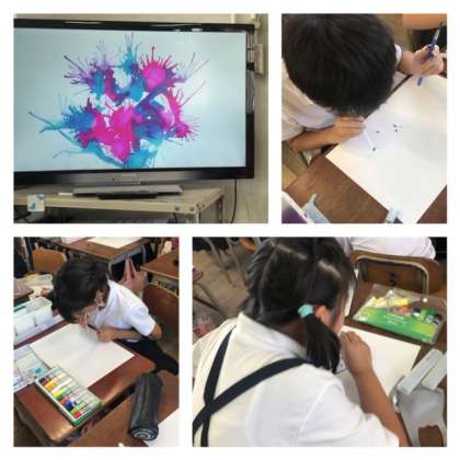 ふきながし、ドリッピングという技法を使って、図画工作の学習です。