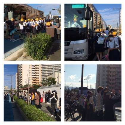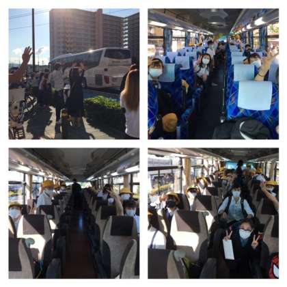 バスの中では、今回3台のバスにしたので、密をさけて、二つの座席に1人で座ります。