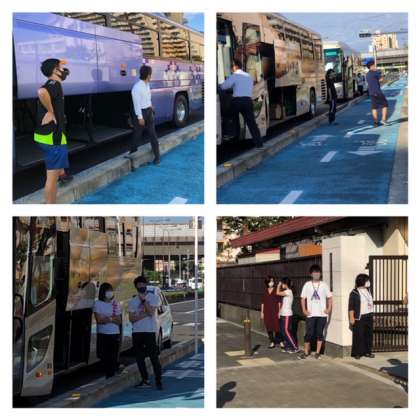 教職員も子どもたちの荷物をバスに入れてくれました。