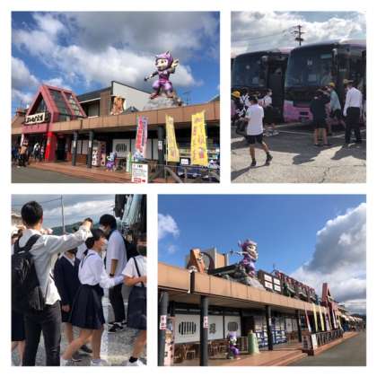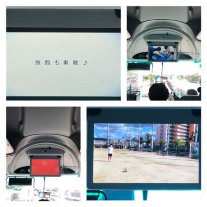 バスの中でも大声は出せないので、学校で子どもたちがつくったDVDを見ています。