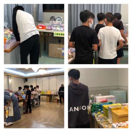 振り返りタイムも終わり、入浴と、お土産タイムを密を避けて、クラスごとにやっています。