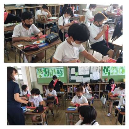 各クラスで、タスキの色が違います。当日を楽しみにしていてください。