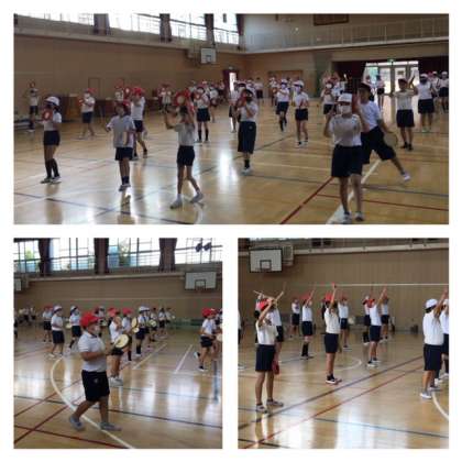 パーランクのきれいな音が響いています。東小フェスタに向けて、5年生が心を一つにして、エイサーを練習しています。