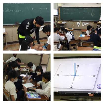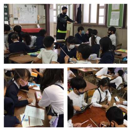 かげと太陽の関係について学習しています。今日は、次の学習で実験する準備をしました。グループにわかれ、実験用紙にストローを立てたり、実験の仕方を確認したりしました。