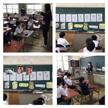 生まれてくる前は、お腹の中でどうだったのかな、生まれてきた赤ちゃんは、どのように大きくなっていくのかな、など、写真や絵をみながらみんなで学習しました。