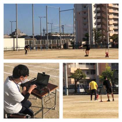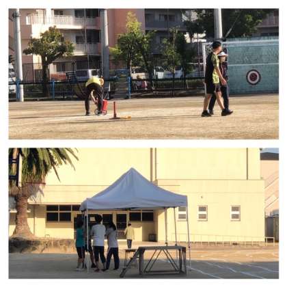 東小フェスタに向けて、ラインを引いたり、オンラインで校内に放送したりできるか確認しました。