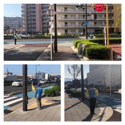 水曜日と金曜日には、地域の皆さんが大きな道路に立ってくださっています。