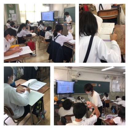 大型テレビに、子どもたちのノートを映し出し、それをみんなで共有することもできました。