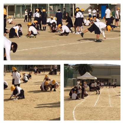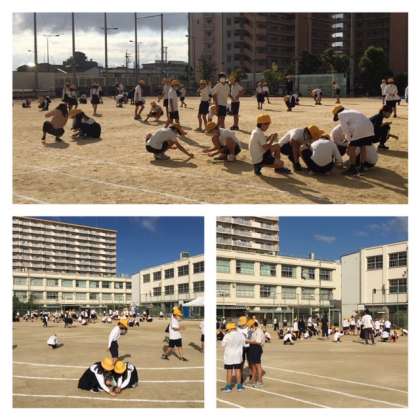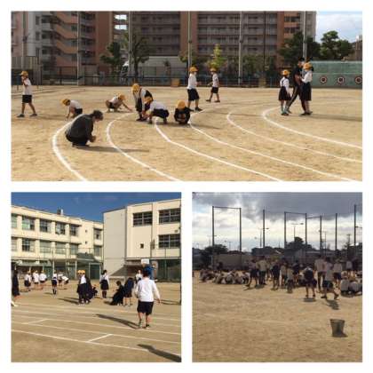 登校した4、5、6年の児童に、放送で呼びかけます。そしたら、朝の用意を済ませて、子どもたちが運動場に出て来ました。