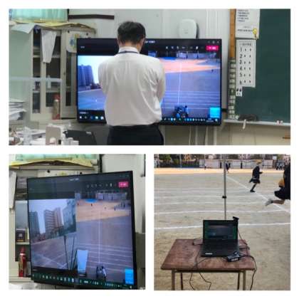 ティームスを使って、東小フェスタが映像で教室の子どもたちに届くかどうかをしました。