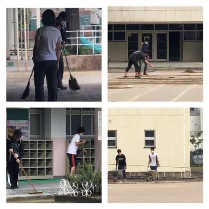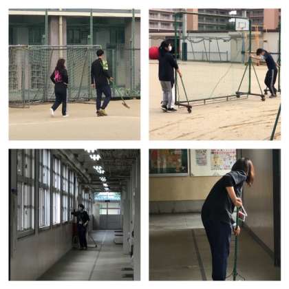 今回は、教職員だけで行いました。すごいパワーです。チームワークよく、さっといろんな準備ができました。