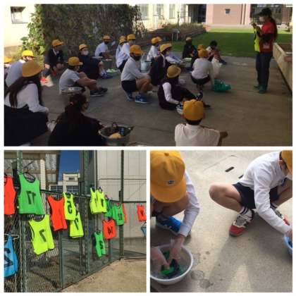 手洗いと洗濯機の違いについて学習したあと、実際に手洗いの実習をしました。洗剤の量を考え、もみ洗い・つまみ洗い・おし洗いを体験しました。