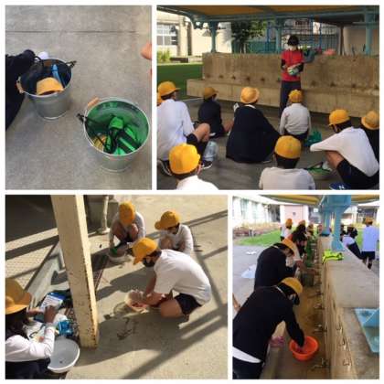 今までは大きなたらいでやっていましたが、今回は一人ずつできるようにしました。