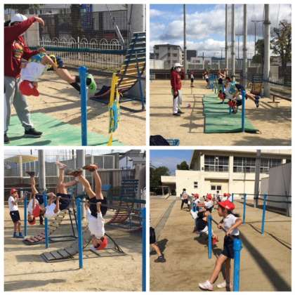 逆上がりの練習もしています。各自、目標をもって頑張っています。