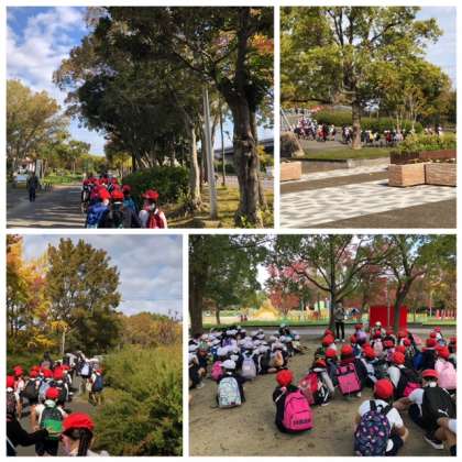 みんながつくる1年2年の遠足 公開日 2020/11/12 更新日 2020/11/12 学校日記 久宝寺緑地に着きました。 風はさわやかです。 木々も紅葉しています。 よく歩き切りました。 いいね(0)