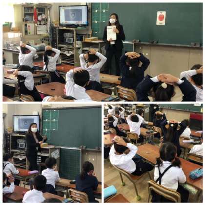 クインシー先生を迎えて、1年生が英語を学んでいます。