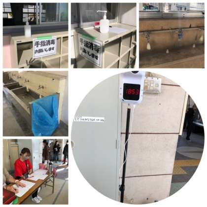 感染防止対策です。 入場者の名簿、検温、消毒など確実にしています。