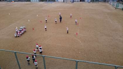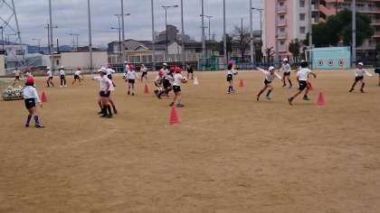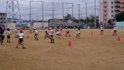 厳しい寒さの中で元気よく3年生が体育をしています。