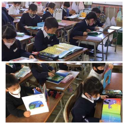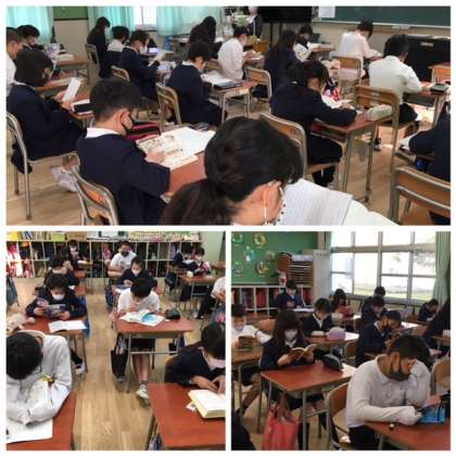 今日も、静かに読書をしています。オルゴールの音とともに、学校中がシーンとなります。