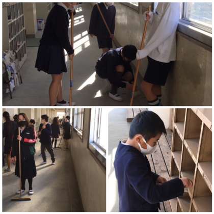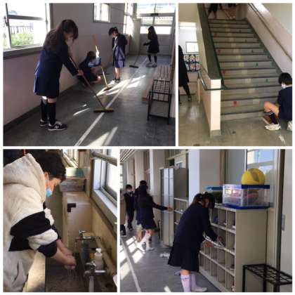 長吉東小学校のリーダーの6年生が廊下や階段をきれいに掃除してくれています。