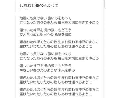この歌は、神戸の音楽の先生がつくられました。大震災で家が全壊し、目の当たりにした神戸の街からこみあげてきた思いを、歌詞にしたそうです。