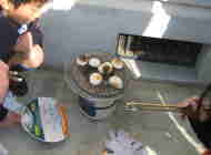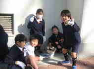 3年生は、社会科で昔のくらしの様子について学習します。今日は、七輪で火をおこし、おもちを焼く体験をしました。炭に火がつくよう、新聞紙や炭の置き方、うちわであおぐなど班で協力しました。自分で焼いたおもちは、「おいしい!」と笑顔いっぱい!!