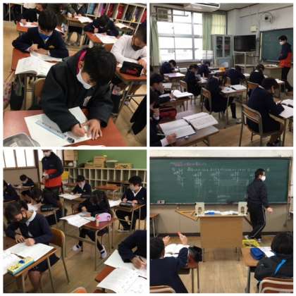4つのクラスに分かれて、習熟度別に学習しています。今日は、小数のわり算の筆算について学習しました。