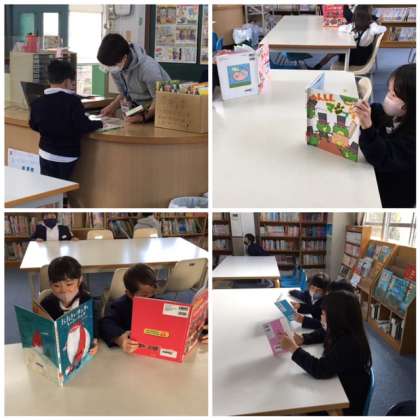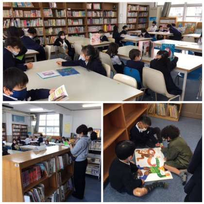 毎週火曜日は、図書支援員の方が来てくださる日です。本の整理をしたり、読み聞かせをしたりしてくださいます。今日も、楽しい図書の時間が過ごせました。